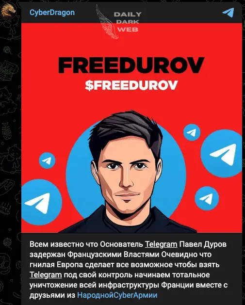 The Cyber Army of Russia has a history of launching attacks in response to geopolitical events, and Durov’s arrest appears to have galvanized their efforts. The group’s campaign, branded as #FreeDurov, has gained traction across various dark web forums, with many hackers pledging their support.
