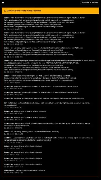 - "Elevated error rates across multiple services"